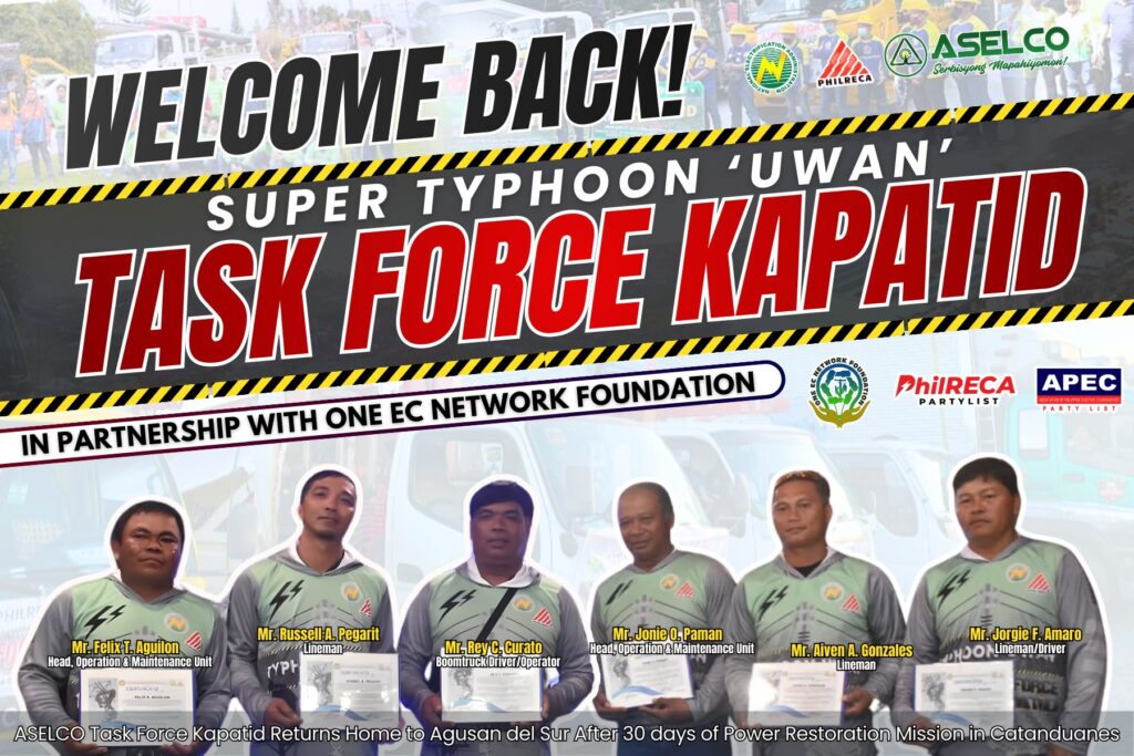Demonstrated heroism in restoring power to typhoon-affected areas