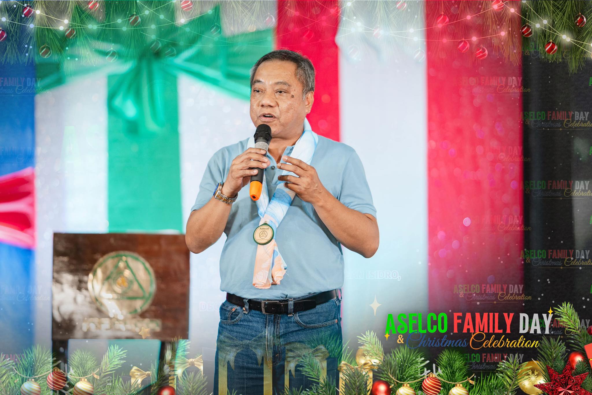 During his Yuletide Message at the ASELCO 2025 Family Day on December 20, 2025, Atty. Omar Mayo honored ASELCO’s everyday heroes in the field, especially the task forces deployed to ZAMCELCO and FICELCO who demonstrated heroism in restoring power to typhoon-affected areas. He also recognized the collective effort in maintaining ASELCO’s Triple A status and affirmed that the cooperative is truly “one big happy family.”